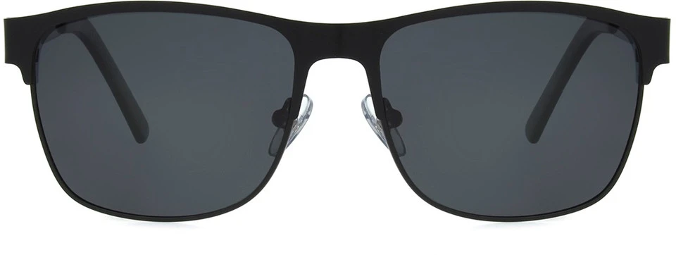 A flat metal frame gives these classic men’s way-style sunglasses from Foster Grant® a trendier outlook. The semi-curve, matte black frame has plastic temples with rubberized insets for better grip, and features adjustable nose pads for a more custom-like fit.