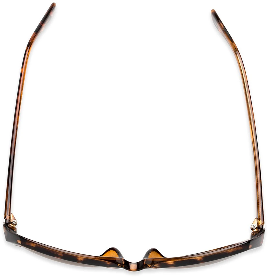 A gleaming metal accent at the hinge ensures a sophisticated finish, while scratch- and impact-resistant lenses offer 100% UVA-UVB sun protection–perfect for shielding eyes when reading outside. A stylish leopard print case with spring closure and convenient built-in cleaning cloth will safeguard your frames.