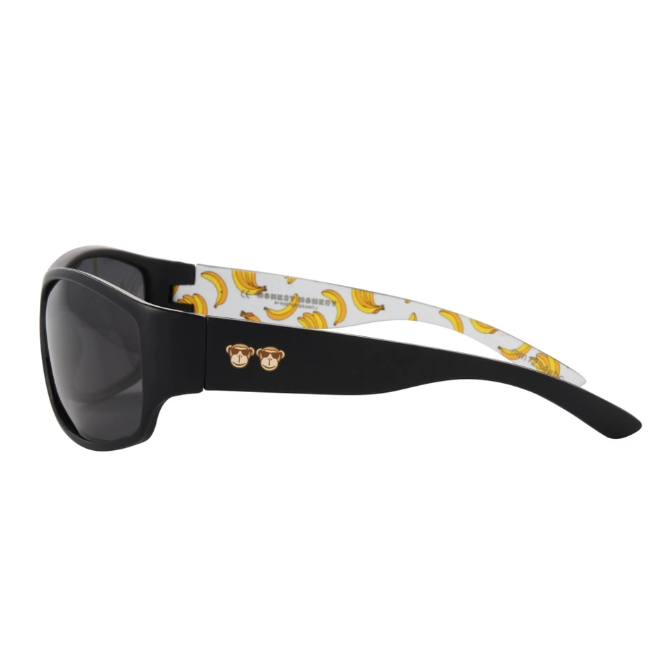 At home or at the beach, Monkey Monkey Bermuda polarized kids’ sunglasses offer full coverage and modern style for kids. The wrap-style frame also happens to be made out of 50% recycled plastic*. The wide lenses provide 100% UVA-UVB protection, are resistant to scratches and impacts, and they are polarized to reduce glare. Includes a Monkey Monkey pouch.