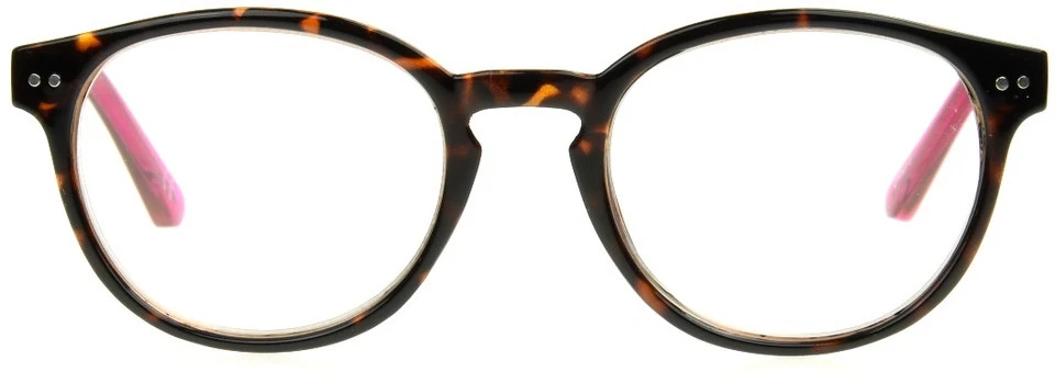 Round full frames in tortoise flow beautifully into purplish translucent temples and subtly accented hinges. The look is not the only thing that is perfectly pleasing. These women’s reading glasses feature scratch and impact resistant lenses for a long life of clear, blemish-free viewing. And with a variety of reading powers available, you can likely choose a magnification that brings your world into clear focus. Read your phone, a novel, a menu, or what have you in style and comfort. Going somewhere? A color-matching soft-shell case is the perfect travel companion for your glasses and is included. With a focus on style, visual clarity and comfort, you simply can’t go wrong with Foster Grant® Bryn women’s reading glasses.
