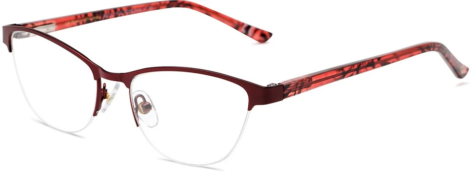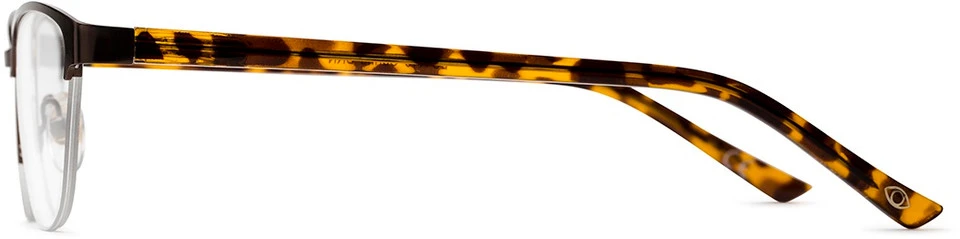 The Carina is a semi-rimless cat eye frame shape with metal detailing on the brow and trendy tortoise colored temples. Best suited for narrow faces, this style has adjustable nose pads and spring hinges to make for a comfortable fit all day long.