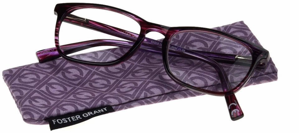 Put on a pair of purple-patterned Elana women’s reading glasses from Foster Grant. You’ll put on classic, elegant style with just a hint of contemporary panache.