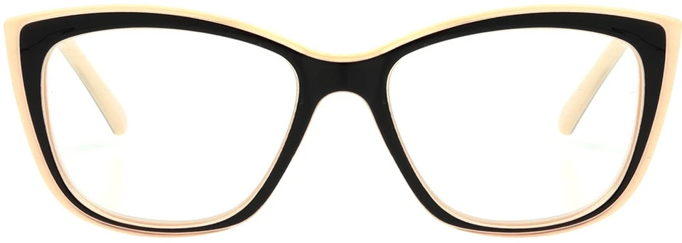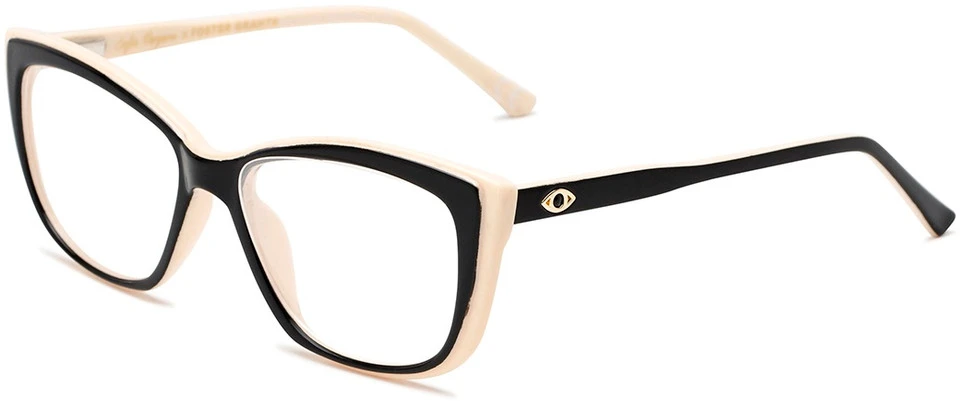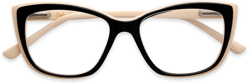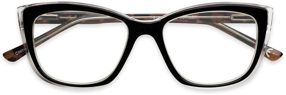 The Gloria is offered in an oversized square style with an upswept cat eye shape. Best suited for narrow faces, this bold reader has a beveled frame for a layered effect with sturdy core wire temples and spring hinges.
