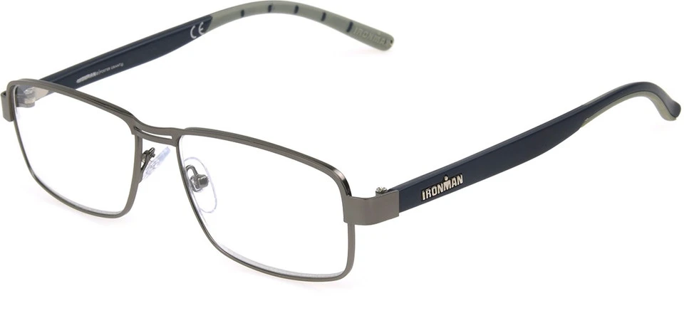 NEW to the Foster Grant® Ironman® collection, IM1004 men’s reading glasses offer strong performance and style. Double injection rubber temples merge into a front-facing satin gunmetal frame with a subtle double brow bar and adjustable nose pads for a personalized fit.