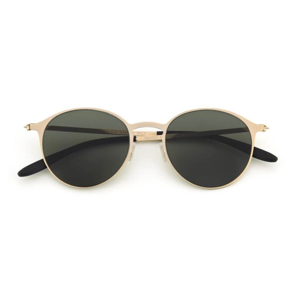Add a flash of glamour to your look with Joy Super Flat sunglasses. They feature a round metal frame in a matte pale gold finish. Contrasting black rubber tips and smooth nose pads help ensure a secure, comfortable fit. The lenses offer 100% UVA-UVB lens protection and are resistant to impacts and abrasions. Fold these sunglasses up flat when not in use for easy and convenient carrying. When folded, they have an amazing depth of 14.22mm; that’s just barely over half an inch!