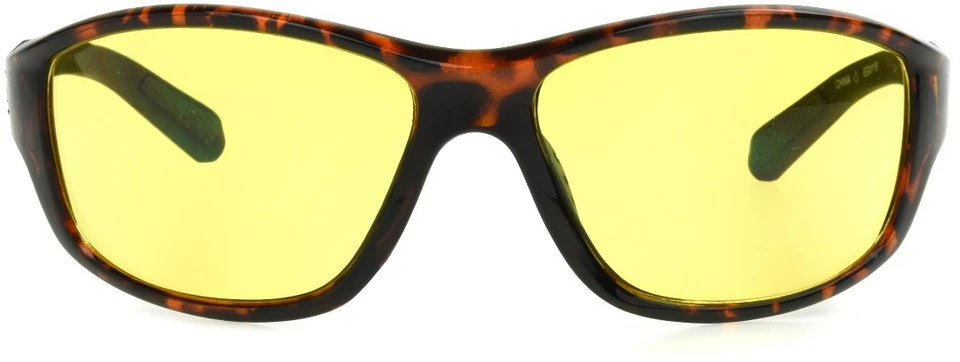 A classic wrap style gets redone in these Foster Grant® men’s sunglasses with night driving lenses. The shiny tortoise frame meets scratch- and impact-resistant yellow lenses that improve contrast for better visual clarity behind the wheel.