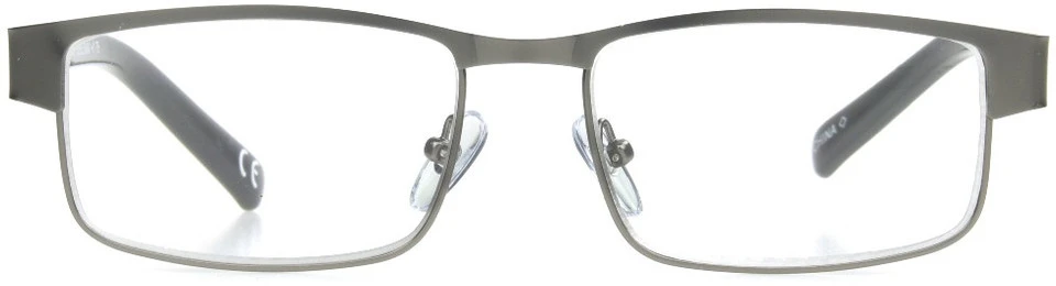 Leo Men’s Reading Glasses by Foster Grant® are a modern and stylish square shape style with a flat gunmetal front and black plastic temples.