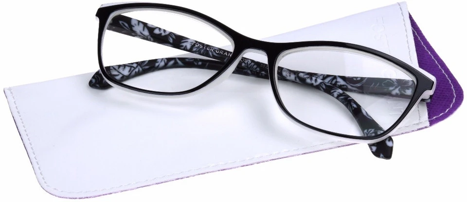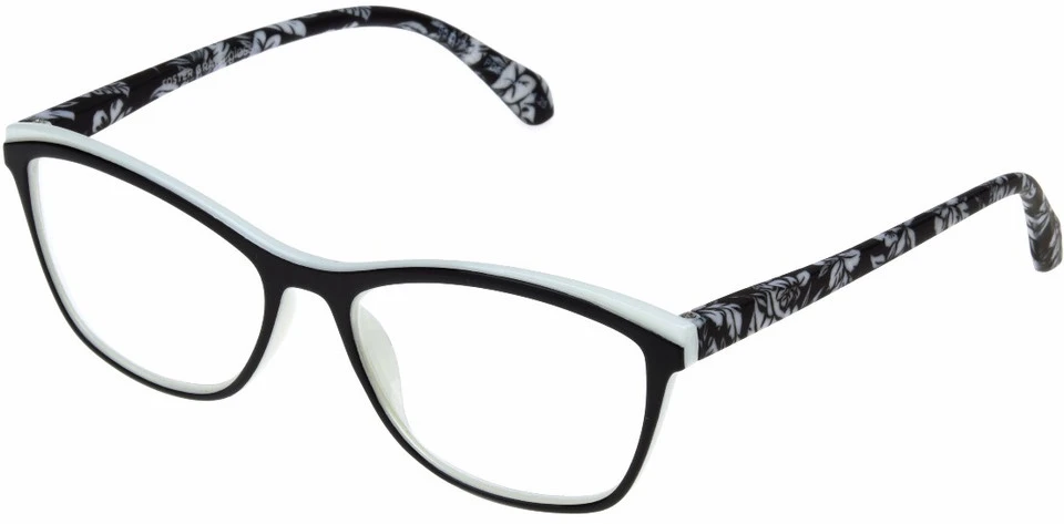 Meryl debuts in our Gloss Collection as a “go with everything” frame. Featuring a shiny black frame over shiny opaque white with wrapped matte opaque floral temples.
