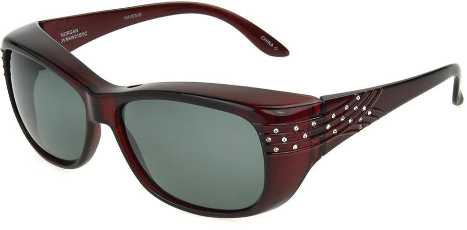 Haven® Signature Morgan Crystal Fits Over Sunglasses provide eyeglass wearers with ultimate polarized 100% UVA-UVB lens protection combined with unparalleled quality, craftsmanship and styling.