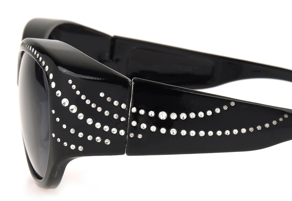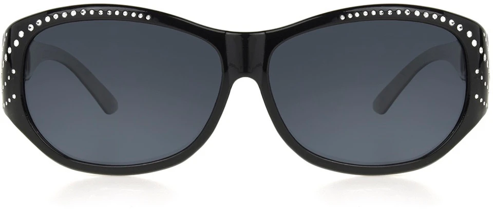 Add some bling to your life in the beautiful gloss black frame with faux crystal frame accents. Smoke lenses are perfect for bright sunny days. Scratch-resistant, polarized lenses help reduce glare and provide 100% UVA-UVB lens protection.