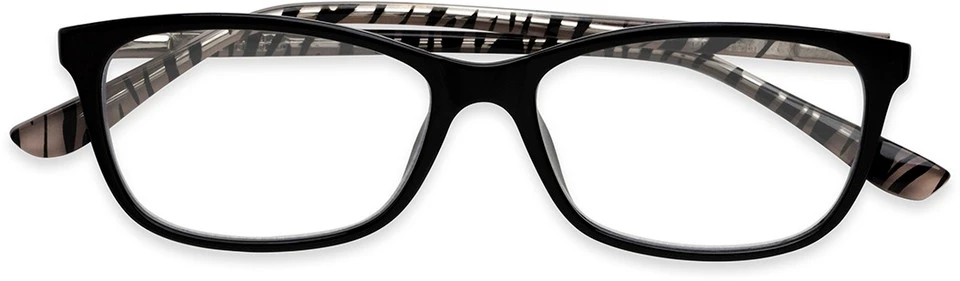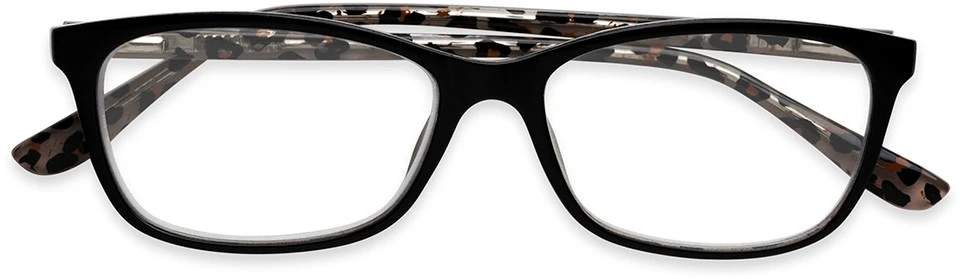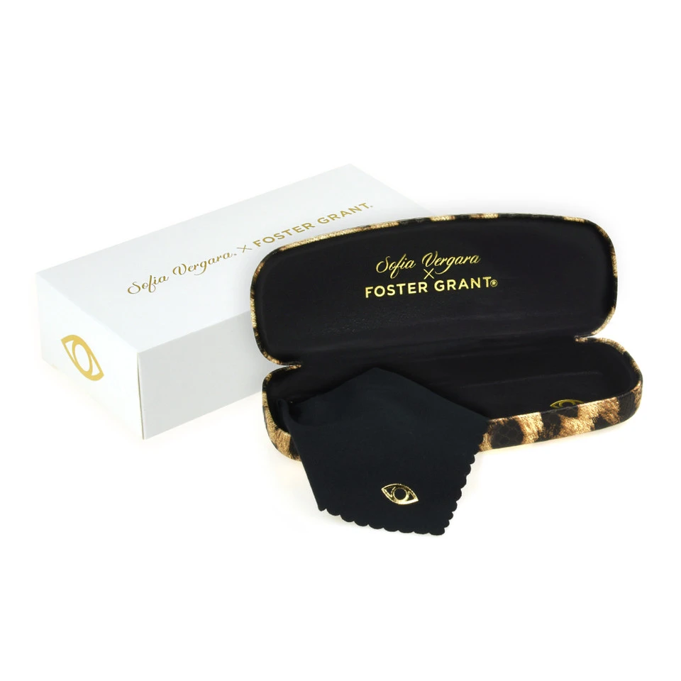Polished black plastic is contrasted by understated animal print on the frame’s interior of the Rachel Multi Focus™ Blue reading glasses. This sleek Sofia Vergara® x Foster Grant® style also features scratch- and impact-resistant Multi Focus™ lenses, which offer three magnification strengths in one. Plus, the lenses filter 30% of potentially harmful blue light* and provide 100% UVA-UVB lens protection. A fashionable leopard print hard shell case with logo interior and convenient cleaning cloth completes the look.