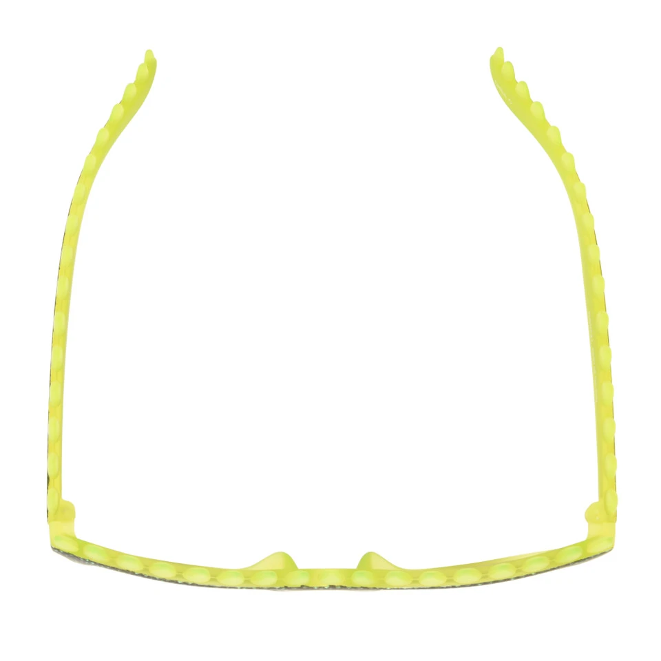 Help your child show off their Jurassic side with 58873FGK300 kids’ sunglasses. Neon yellow teeth run along the entire top of the green scale-patterned frame. “RAWR SOME” is printed on the left temple, encouraging kids to let out their inner dinosaur. The blue mirror lenses offer 100% UVA-UVB protection and are resistant to scratches and impacts. Includes a neon green case with blue drawstring.
