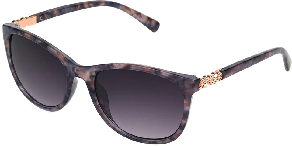 These sophisticated cat-eye sunglasses from Foster Grant® have a rosy purple frame and matching temples with delicately placed gold and crystal accents. The smoke-tinted lenses help guard against potentially harmful rays with 100% UVA-UVB lens protection and feature a durable coating for exceptional scratch and impact-resistance.