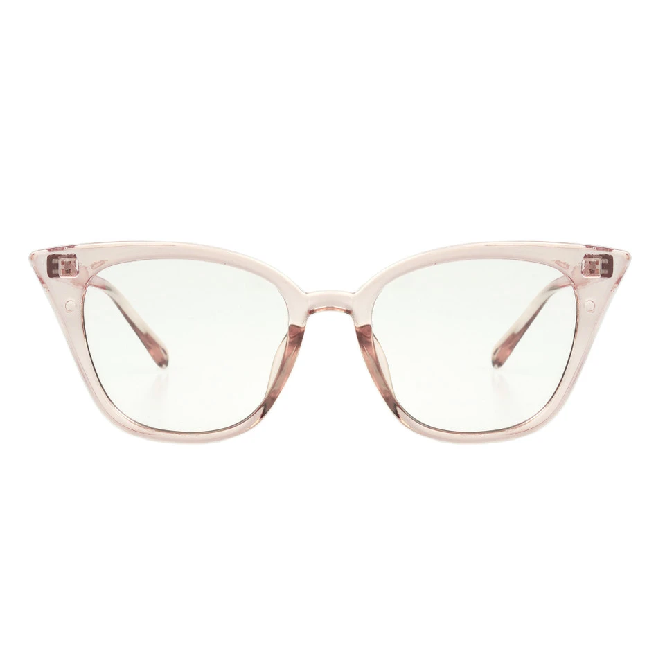 Rose pairs sweet and sophisticated style with cutting-edge blue light-filtering technology. The frame is a candy-like crystal light pink, with a classically sexy cat eye shape. And it has a slightly flexible spring hinge that ensures a comfortable, secure fit all day long. In addition to featuring patented blue light technology, the lenses of these Foster Grant® Blue Light Glasses are scratch- and impact-resistant and offer 100% UVA-UVB lens protection.