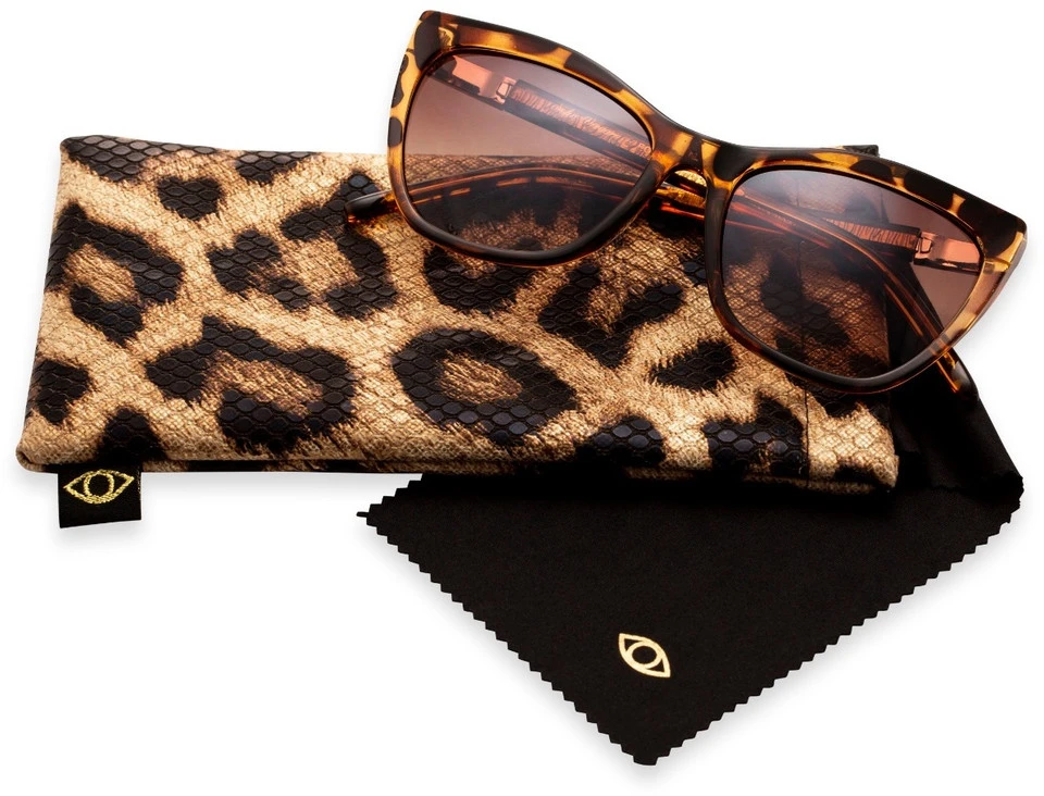 A subtle cat-eye makes these Sofia Vergara® x Foster Grant® women’s sunglasses a sophisticated addition to any eyewear collection. Scratch- and impact-resistant lenses offer 100% UVA-UVB protection from the sun’s damaging rays, while the chic leopard print case with spring closure and built-in cleaning cloth is the perfect combination of fashion and function.