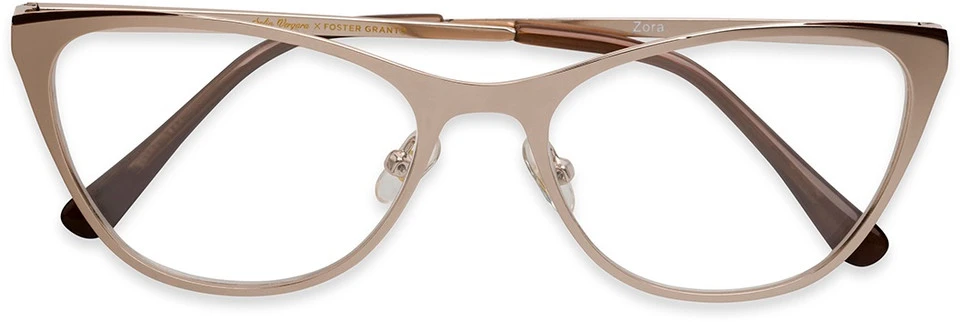 In satin-finish metal with coordinating metallic accents atop the cat-eye corners, the Sofia Vergara® x Foster Grant® Victoria Multi Focus™ Blue reading glasses have a cool two-tone effect. Adjustable nose pads and plastic temple tips ensure comfort and proper fit, while scratch- and impact-resistant lenses filter 30% of potentially harmful blue light* and offer 100% UVA-UVB lens protection. On top of all that, our specialty Multi Focus™ technology gives the lenses three magnifications in one. A chic leopard print hard shell case with logo interior and cleaning cloth is the perfect place to stow your readers.