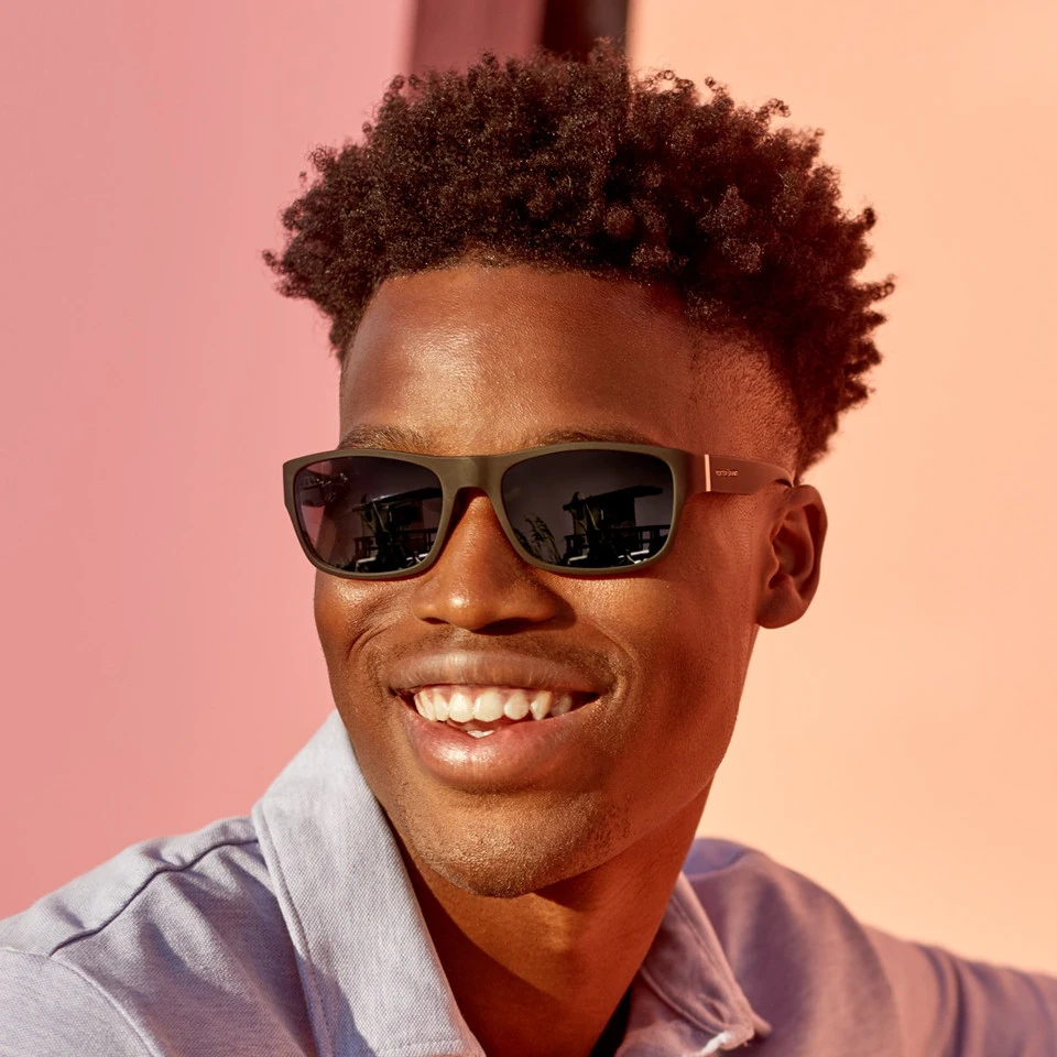 This laid-back style combines good looks and comfort in the best way possible. The classic square shape gets extra style points with a matte black soft-to-touch finish, silver detailing, and gray smoke lenses.